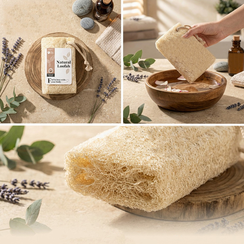استمتعي ببشرة ناعمة وحيوية كل يوم مع ليفة تجمع بين التقشير الطبيعي والعناية الفاخرة!
